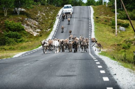 Massvis med ren i vägrenen