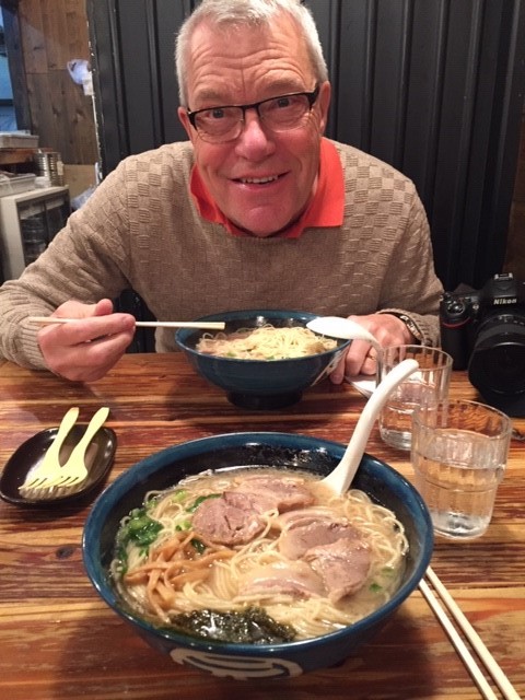 Bertil äter med pinnar
